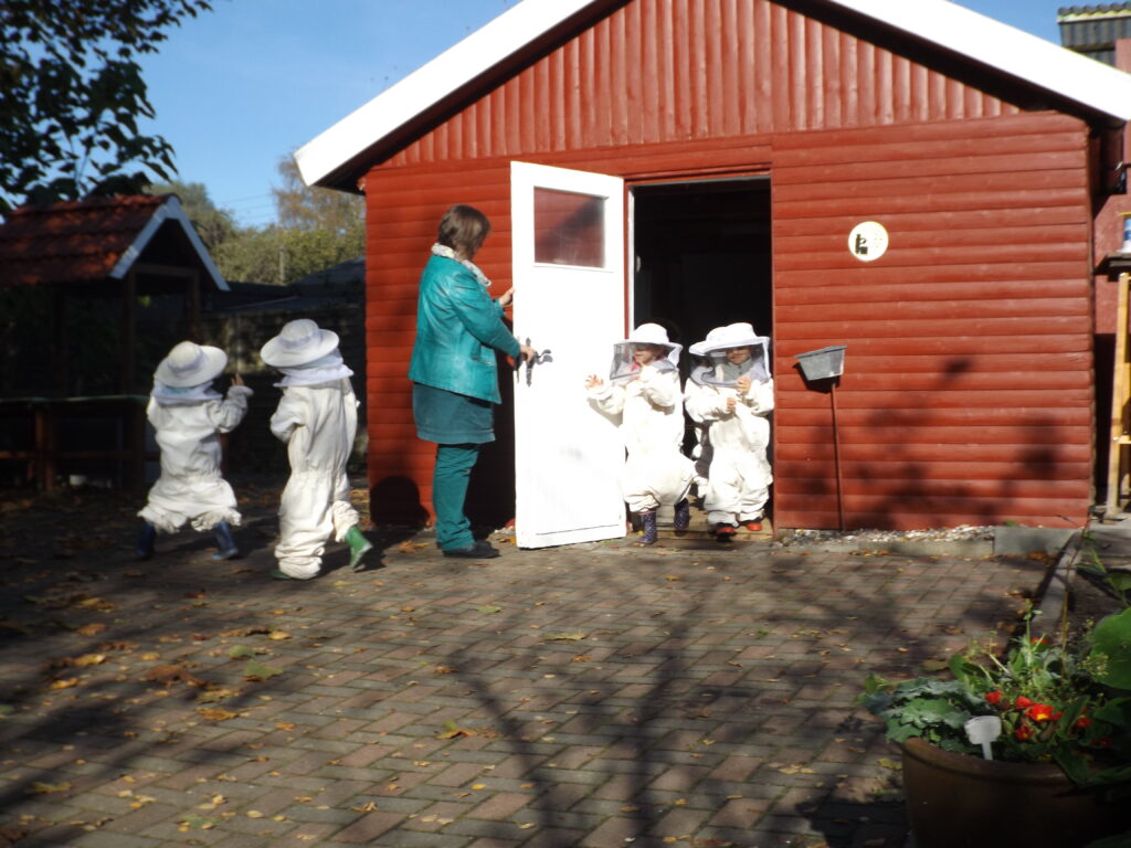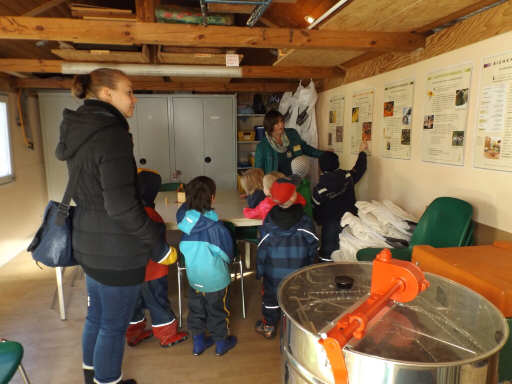 Das Blütenangebot (Tracht) ist auf dem Ausbildungsgelände, dem anliegenden Park und den nahen Schrebergärten groß. Drei Bienenvölker können von den kleinen Forscherinnen und Forschern intensiv beobachtet werden. Ein Schaukasten veranschaulicht das eindrucksvolle Sozialleben staatenbildender Insekten.