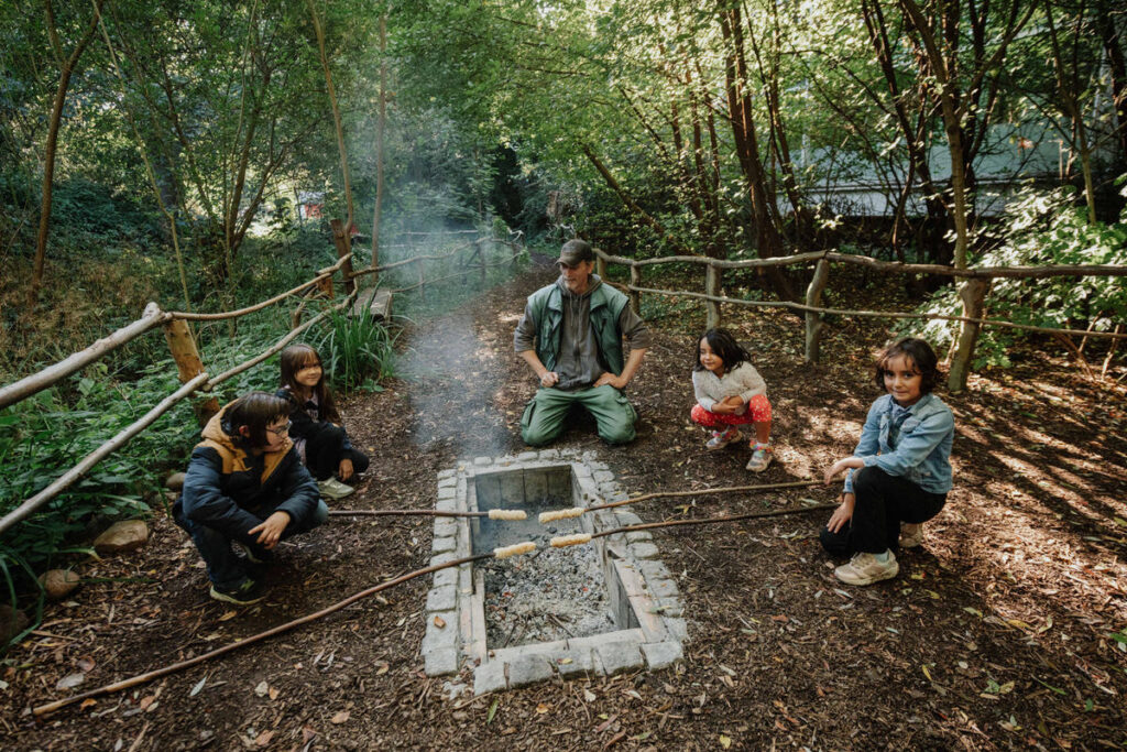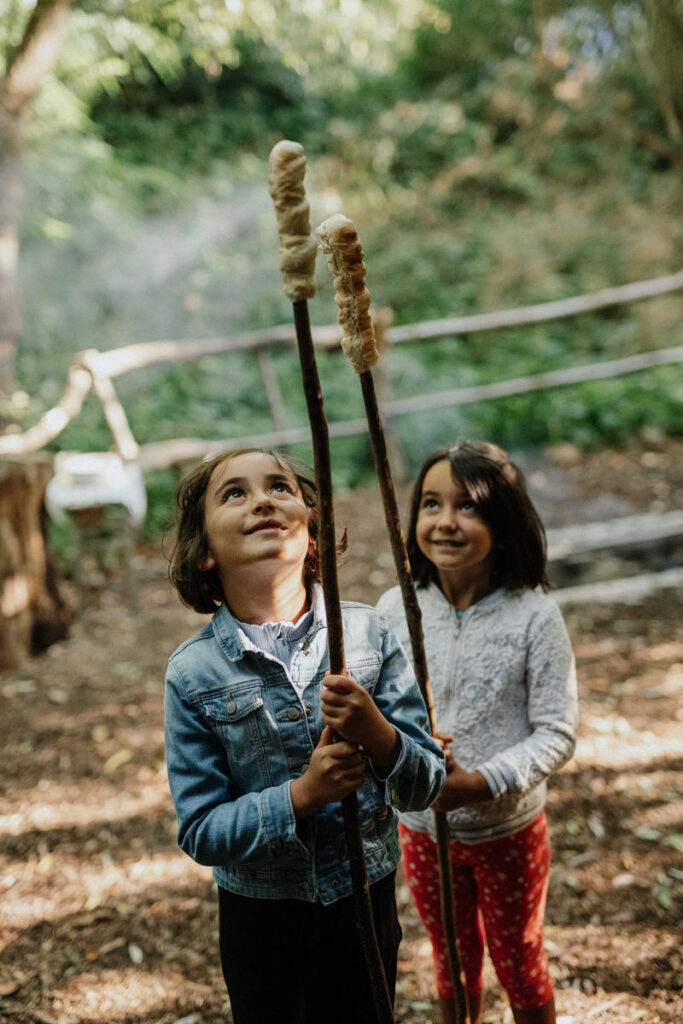 Das gemeinsame Stockbrot-Essen zum Abschluss eines Rundganges ist ein beliebtes Highlight für hungrige Entdecker und kleine Naturforscher.